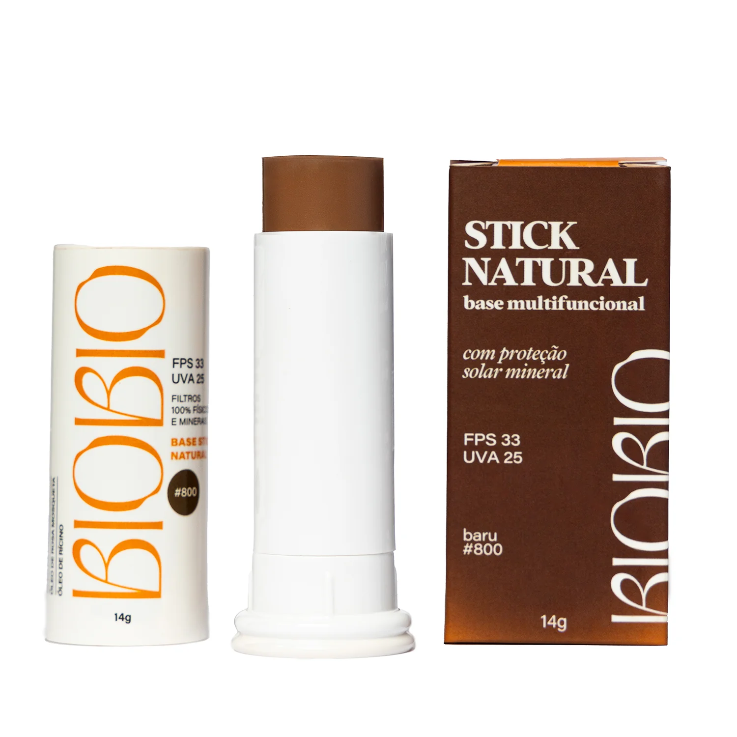 Base multifuncional em bastao com cor e protetor solar FPS33 tom #800 Baru 14g - Biobio