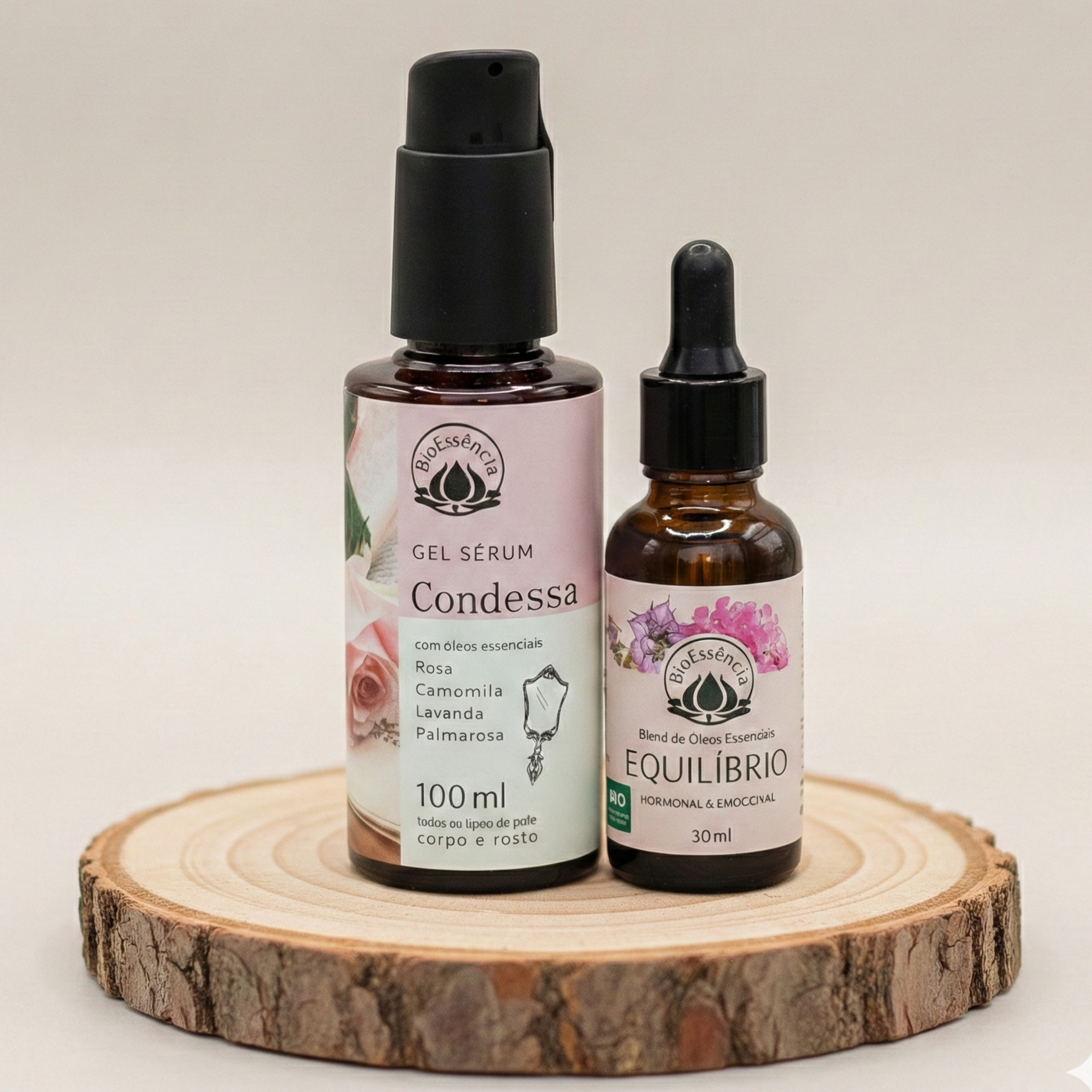 Feito para os dias em que a pele pede mais cuidado, os hormônios se agitam e o emocional se manifesta no corpo — esse trio sensorial acolhe com toque leve, aroma floral e sabedoria natural.