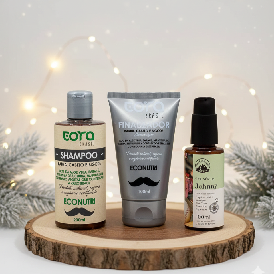 Para homens que preferem o natural ao exagero, o simples ao complicado, o cuidado que funciona ao que apenas promete. O Kit Essencial Masculino é um ritual inteligente, vegano e multifuncional — que cuida da barba, dos fios e da pele com ingredientes seguros, potentes e eficazes.